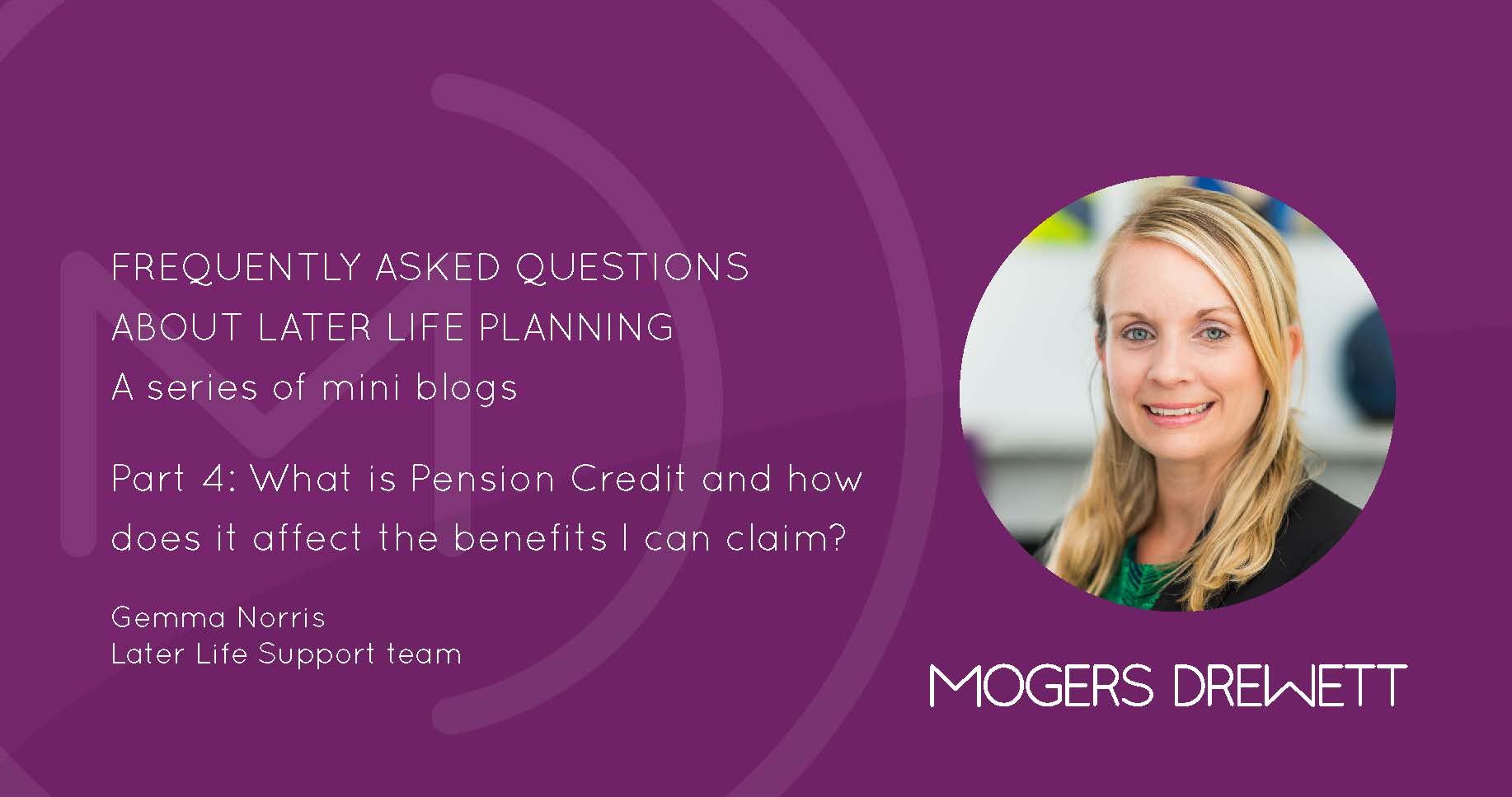 In the fourth mini blog in the series of FAQs About Later Life Planning, Gemma Norris explains what Pension Credit is and who is eligible.