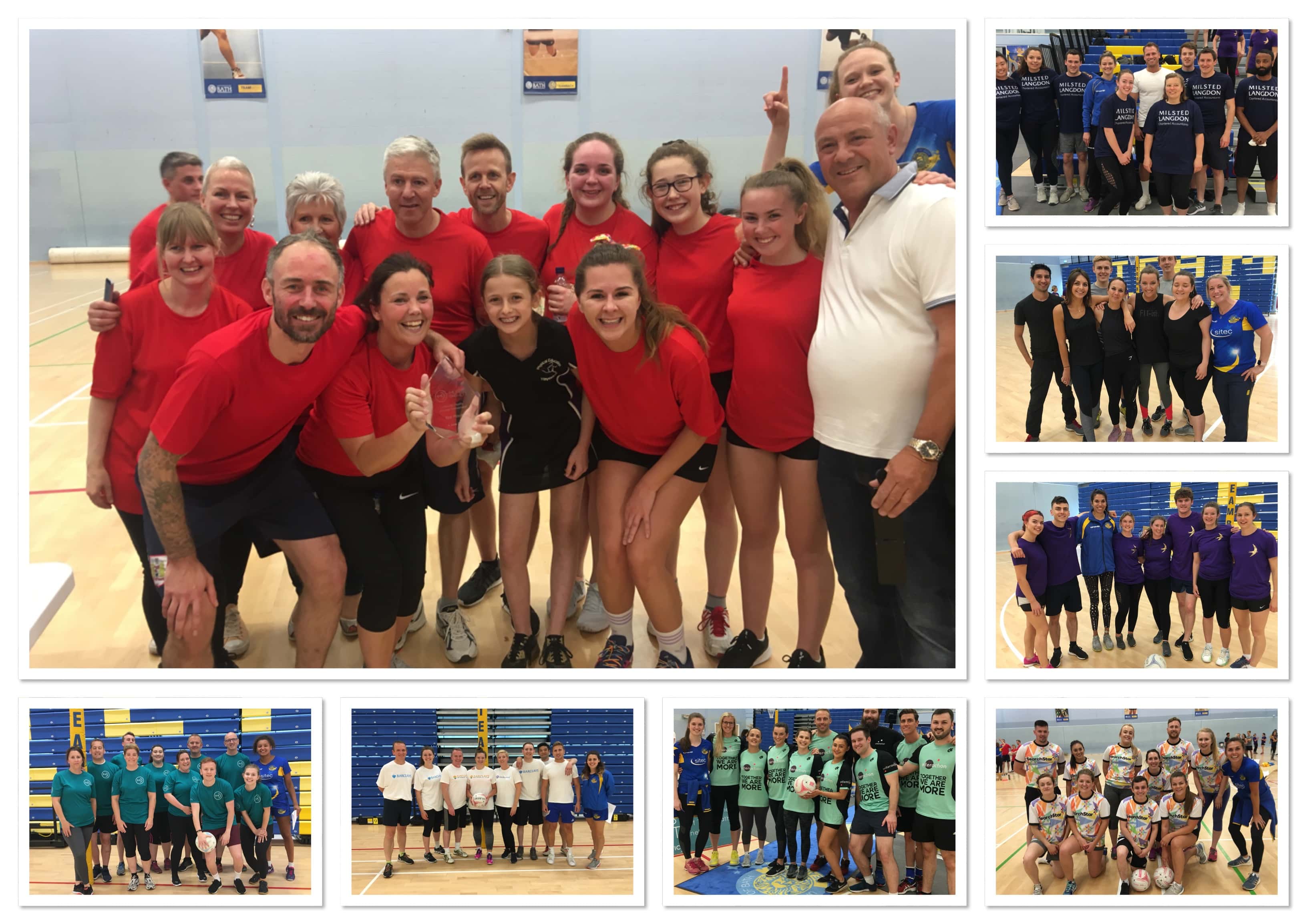 Supported by Team Bath Netball, hosted in the Sports Training Village at the University of Bath, eight teams from local businesses took part alongside one pro player from Team Bath who was allocated to each team. Superleague players included Amanda Varey, Imogen Allison, Mia Ritchie, Superleague head coach Anna Stembridge and others.